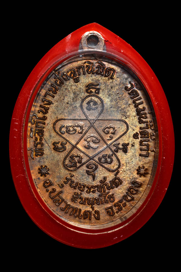 เลสหลวงพ่อรวย วัดตะโก เนื้อเงินลงยาแดง "ไตรมาส94 รวยสมใจนึก"
