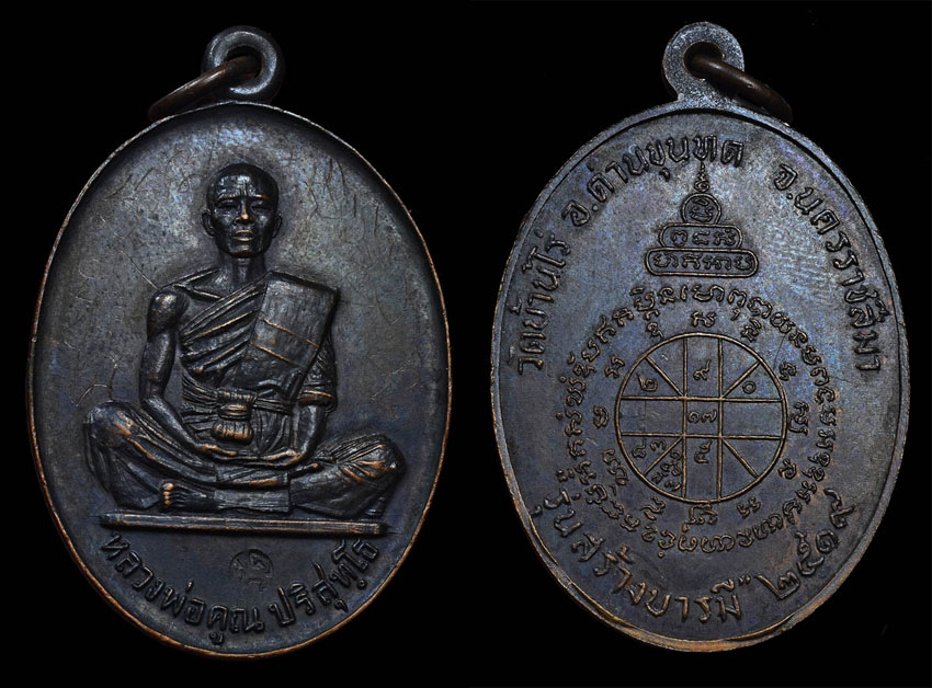เหรียญหลวงพ่อคูณ วัดบ้านไร่ เนื้อทองแดงรมดำ รุ่นสร้างบารมี ปี 2519