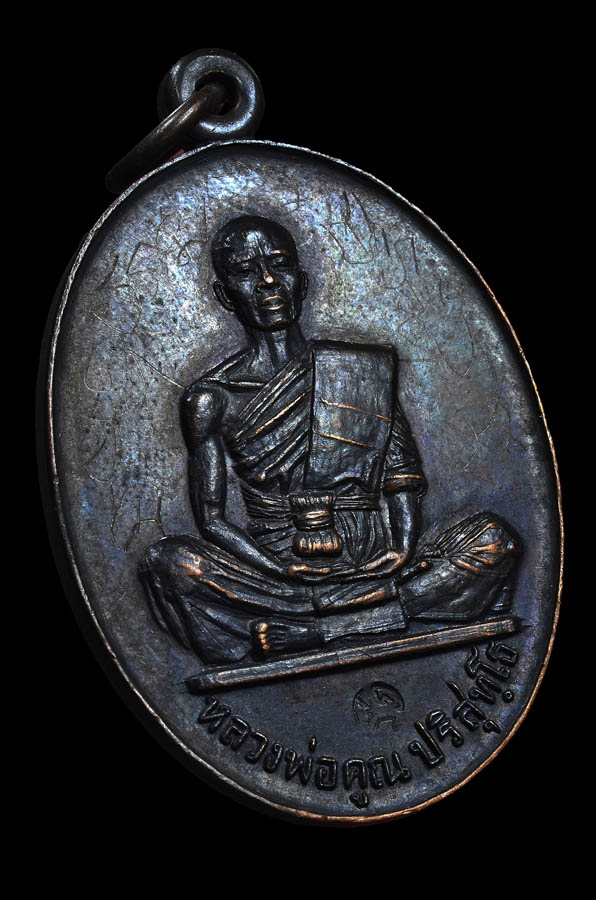 เหรียญหลวงพ่อคูณ วัดบ้านไร่ เนื้อทองแดงรมดำ บล็อกอมหมาก ปี 2517