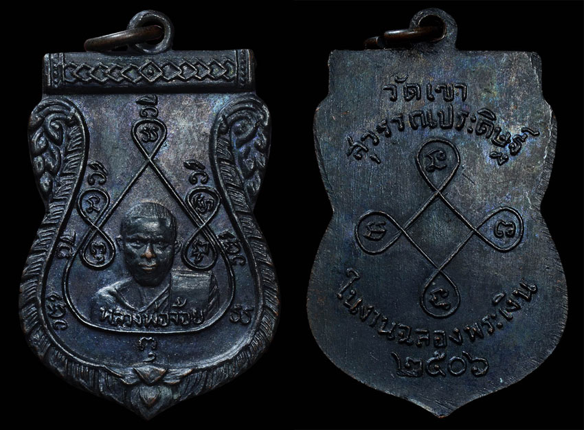 เหรียญหลวงพ่อพลับ วัดเชิงทะเล รุ่นแรก ปี 2509 เนื้อทองแดงรมดำ