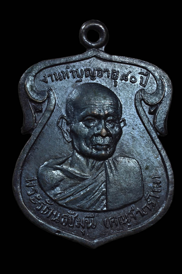 เหรียญพ่อท่านเจ้าฟ้า(เพชร) หลังพ่อท่านคล้ายปี2521 เนื้อทองแดงรมดำ วัดโบราณาราม พิปูน