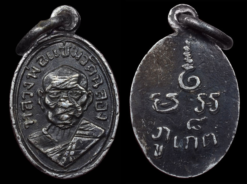 เหรียญเนื้อตะกั่วปราบอั้งยี่ของพ่อท่านแช่ม ภูเก็ต ออกวัดชนะสงคราม ปี 2485