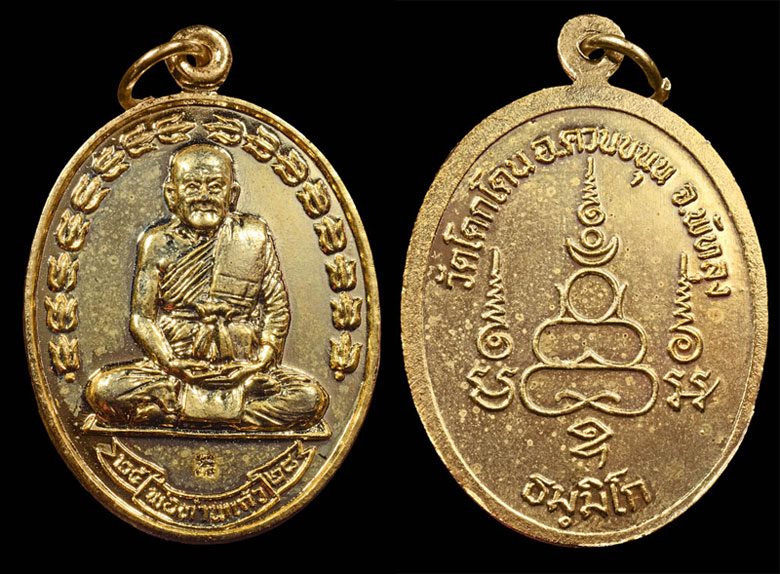 เหรียญเจริญพร อาจารย์มหาอุทัย วัดดอนศาลา พัทลุง ปี2556 เนื้อทองคำ เลข 7