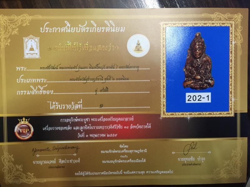 [ รายละเอียด ] แชมป์ที่ ๑ งานอนุรักษ์พระบูชา พระเครื่อง ๑๔ จังหวัดภาคใต้ โรงแรมนิภา การ์เด้น สุราษฯ ๓๐ เม.ย.- ๑ พค. ๕๙.... พระชัยวัฒน์ หล่อโบราณหลวงพ่อพัว วัดเขาราหู "เทพเจ้าแห่งลุ่มน้ำพุมดวง" เนื้อโลหะผสม ปี ๒๔๘๔-๒๔๘๕ (พิมพ์ใหญ่)สุดยอดหายาก ว่ากันว่าจำนวนการสร้างไม่เกิน ๑๐๐ องค์สำหรับพิมพ์ใหญ่นี้ ในพิธีปลุกเสกมีปรากฏการณ์เสียงเขาลั่น แผ่นดินสะเทือน จนเป็นที่มาของคำว่า "พระชัยวัฒน์เขาลั่น" สุดยอดแห่งพุทธคุณที่เด่นชัดด้าน มหาอุตม์ ยืนยง คงพัน รวมถึงเสริมบารมี ไม่มีอับจน ... องค์นี้งามจับใจ คราบเบ้าเดิมๆ แชมป์อย่างเดียวครับ