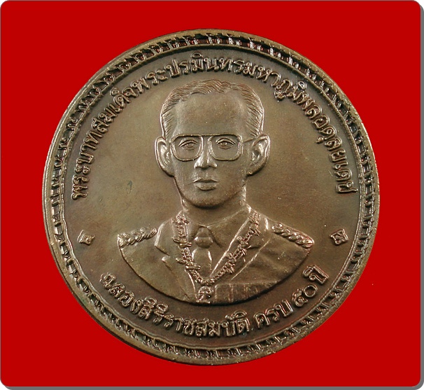 | [ รายละเอียด ] เหรียญในหลวงหลักเมืองสุราษฎร์ธานีเป็นเหรียญที่สร้างขึ้นในโอกาสฉลองศาลหลักเมืองสุราษฎร์มีเกจิอาจารย์ปลุกเสกจากทุกภาคโดยกำหนดเป็นพิธิใหญ่ โดยมีอาจารย์จากทั่วทุกภาคทั่วประเทศนับเป็นวัตถุมงคลชิ้นสำคัญอีกชิ้นหนึ่งของชาวสุราษฎร์มี่เป็นมงคลยิ่ง....อนึ่งการสร้างเหรียญครั้งได้แบ่งเหรียญออกเป็น 2 ประเภทคือเหรียญที่สร้างโดยกองสปาษณ์และเหรียญเนื้อโลหะผสมแบบในภาพให้ผู้เข้าร่วมในพิธีได้ทำบุญ น่าสะสมมากเนื่องจากประสบการณ์ในด้านเจริญก้าวหน้ามีสูงมาก...