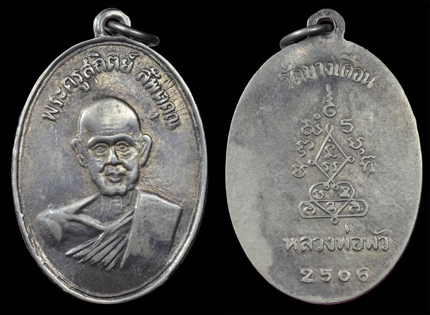 เหรียญหลวงพ่อพัว วัดบางเดือน รุ่นแรก พิมพ์คอเอียง ปี 2506