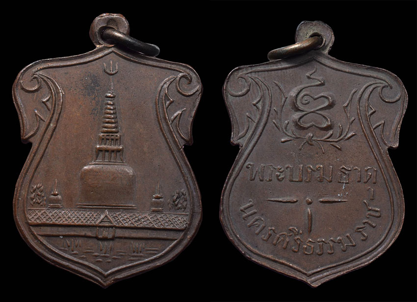 [ ชื่อพระ ] เหรียญพระบรมธาตุ นครศรีธรรมราช เนื้อทองแดง ปี 2460