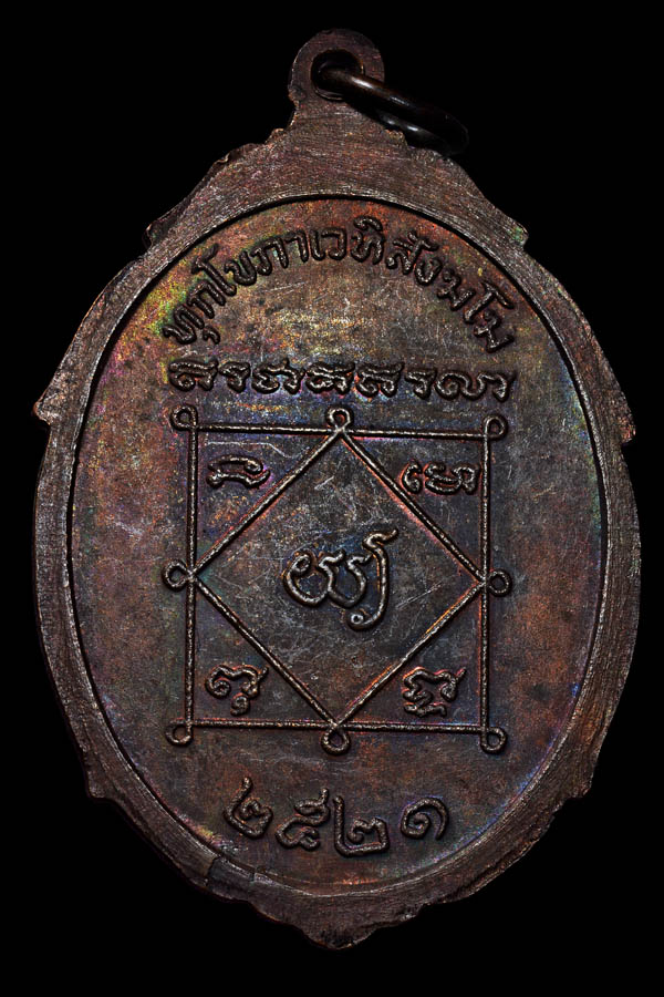เหรียญพ่อท่านเจ้าฟ้า(เพชร) หลังพ่อท่านคล้ายปี2521 เนื้อทองแดงรมดำ วัดโบราณาราม พิปูน
