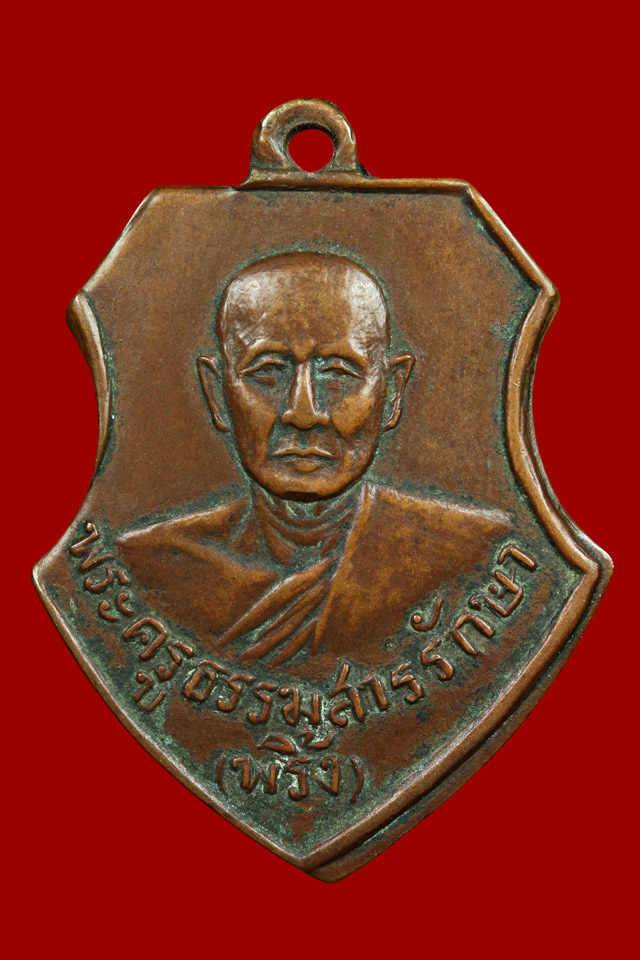 [ รายละเอียด ] เหรียญอาร์ม หลวงพ่อพริ้ง วัดวรจันทร์ รุ่น 2 ปี 2483 จังหวัดสุพรรณบุรี ด้านหน้าเหรียญเป็นรูปเหมือนหลวงพ่อพริ้งหันหน้าตรง(ส่วนใหญ่จะหันข้าง หันหน้าตรงมีน้อย) ด้านล่างเขียนว่า พระครูธรรมสารรักษา (พริ้ง) ด้านหลังเหรียญเป็นรูปยันต์หลวงพ่อพริ้ง ด้านบนยันต์หลวงพ่อพริ้งเขียนเป็นเลขไทยว่า "๒๔๑๐" ด้านล่างของยันต์หลวงพ่อพริ้งเขียนเป็นเลขไทยว่า "๒๔๘๓" มีพุทธคุณโดดเด่นด้านเมตตามหานิยม ค้าขายดี แคล้วคลาดปลอดภัยในการเดินทาง คงกระพันชาตรี