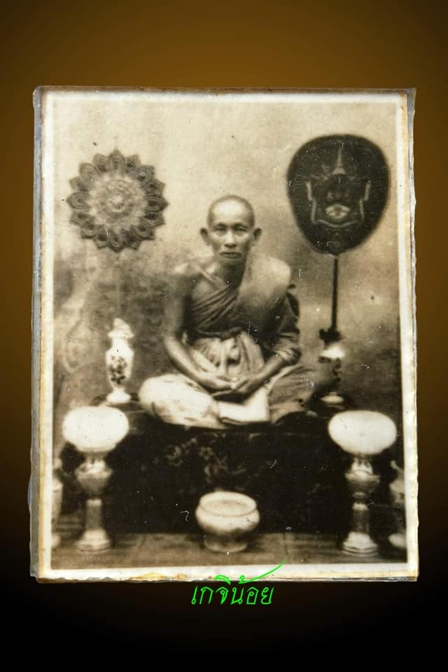 [ รายละเอียด ] รูปถ่ายพัดคู่อัดกระจก หลวงปู่ศุข วัดปากคลองมะขามเฒ่า จังหวัดชัยนาท (รูปที่2) รูปถ่ายซีเปีย หลวงปู่ศุข วัดปากคลองมะขามเฒ่า ถ่ายเมื่อ พ.ศ.2440 ในงานพระราชทานเพลิงศพของ พระเจ้าบรมวงศ์เธอ พระองค์เจ้าทวีถวัลยลาภ กรมหมื่นภูธเรศธำรงค์ศักดิ์ รูปถ่ายซีเปีย พัดคู่ พระครูวิมลคุณากร (ศุข) ของหายากอันดับต้นๆอีกชิ้น พระครูวิมลคุณากร หรือ ที่รู้จักกันในนามหลวงปู่ศุข วัดปากคลองมะขามเฒ่า อ.วัดสิงห์ จ.ชัยนาท รูปหลวงปู่ศุข วัดปากคลองมะขามเฒ่า สีซีเปียอัดบนกระจกบาง1มิล. ซึ่งนิยมใช้กระจกอัดกรอบรูปเกจิยุคเก่าประมาณปี24กว่าๆ ส่วนรูปสีซีเปียกรอบกระจกหลวงปู่ศุขที่ได้รับความนิยมและแพงมากๆจะเป็นรูปพัดยศเดี่ยว ส่วนรูปนี้ซึ่งเป็นพัดยศคู่ค่านิยมและราคาไม่อาจเทียบเท่าแต่ก็มีให้เห็นได้น้อยเช่นกัน ส่วนรูปนี้สภาพเดิมๆ หายากน่าเก็บน่าใช้อีกละคราฟ ************************************************************************************************************************************************************* หลวงปู่ศุข วัดปากคลองมะขามเฒ่า จ.ชัยนาท ท่านเป็น 1 ใน 10 คณาจารย์ผู้มีพลังจิตสูงในปี พ.ศ. 2452 ที่วัดพระปฐมเจดีย์ จ.นครปฐม นัยว่าเป็นการสืบทอดพระพุทธศาสนาอย่างหนึ่ง โดยเฉพาะ "พระดี-เกจิดัง" ในสายวิปัสสนากัมมัฏฐานและเฟ้นหา “สุดยอดพระเกจิ” (ตามประวัติน่าจะมีเพียงครั้งเดียว) โดยนิมนต์พระเถรจารย์และเกจิอาจารย์ที่มีชื่อเสียงโด่งดังทั่วประเทศมาชุมนุมมากกว่า 100 รูป งานนี้เรียกได้ว่า "พิธีชุมนุมพระเกจิชื่อดังทั่วแดนสยาม" ครั้งยิ่งใหญ่ที่สุดในประวัติศาสตร์ก็คงไม่ผิดนัก ในพิธีมีการทดสอบวิทยาคมและพลังจิตอย่างเข้มขลัง โดยคัดเลือกเกจิอาจารย์ครั้งละ 10 รูป ด้วยวิธีจับสลาก จากนั้นนำท่อนไม้ 1 ท่อน มาวางบนม้า 2 ตัว จากนั้นนำกบไสไม้วางบนท่อนไม้ โดย สมเด็จพระสังฆราช (เข) ทรงบอกกติกาว่า เกจิทุกรูปจะต้องใช้พลังจิตบังคับให้กบไสไม้วิ่งไสไม้ไป-กลับโดยกบห้ามหล่นลงมาเด็ดขาด หากใครพลังจิตแก่กล้าจริงก็จะสามารถทำได้ หากใครพลังจิตยังไม่สุดยอดก็ต้องยอมล่าถอยไป ปรากฎว่าหลังการทดสอบผ่านไป 3 วัน 3 คืน เกจิส่วนใหญ่ใช้พลังจิตบังคับกบวิ่งไสไม้ได้ทั้งนั้น แต่บังคับวิ่งไปข้างหน้าได้ทางเดียว บังคับกลับไม่สำเร็จ มีเพียงเกจิ 10 รูปเท่านั้นที่สามารถบังคับกบไสไม้ได้ทั้งไป-กลับ ถือว่าเป็น 10 พระเกจิสุดยอดแห่งสยามประเทศอย่างแท้จริงและปัจจุบันคงหาเกจิรุ่นใหม่เทียบได้ยากยิ่ง โดยเกจิทั้ง 10 รูป ได้แก่ 1. หลวงปู่ศุข วัดปากคลองมะขามเฒ่า จ.ชัยนาท 2. หลวงปู่บุญ วัดกลางบางแก้ว จ.นครปฐม 3. หลวงพ่อกลั่น วัดพระญาติการาม จ.พระนครศรีอยุธยา 4. หลวงปู่เอี่ยม วัดหนัง 