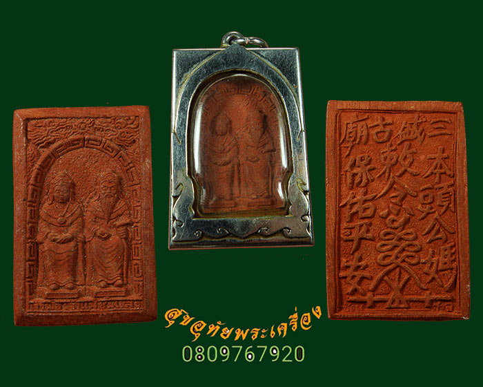 [ ชื่อพระ ] 36.เจ้าพ่อ เจ้าแม่ชุมแสง เนื้อชานหมาก ที่ระลึกซ่อมศาล ปี 2523 สวยกริ๊บเลี่ยมตลับอย่างดีพร้อมบูชาครับ