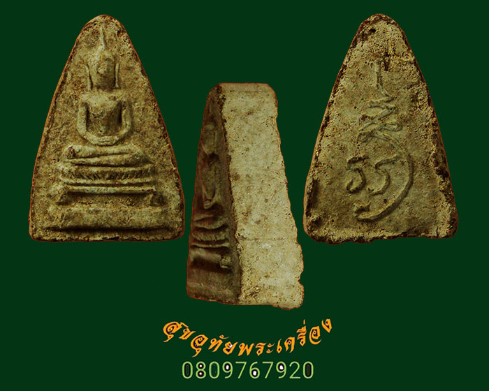 [ ชื่อพระ ] 40.พระผงพุทธ พิมพ์สามเหลี่ยมคะแนน หลังยันต์ หลวงพ่อเอีย วัดบ้านด่าน จ.ปราจีนบุรี หายากพบเจอน้อยครับ