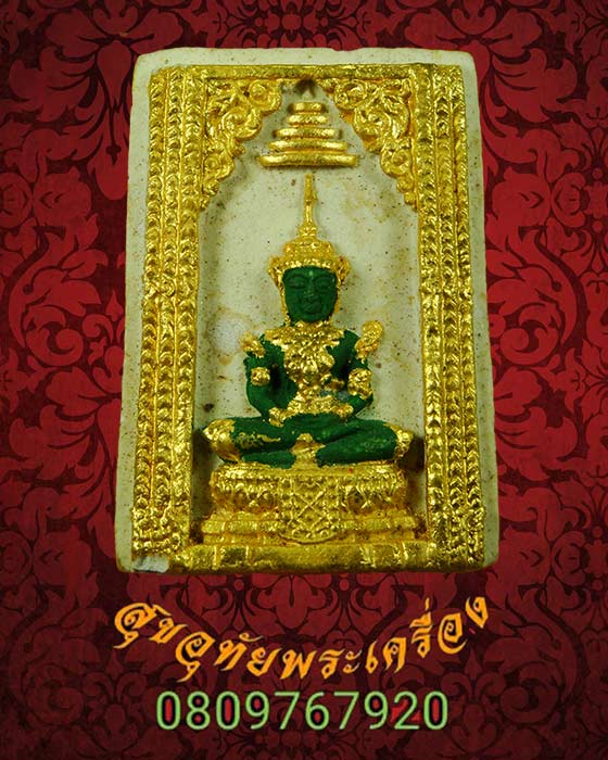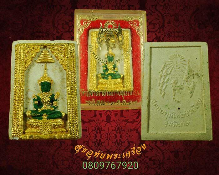 [ รายละเอียด ] พระแก้วมรกต เนื้อผงลงสี โครงการสมทบทุนไทยช่วยไทย พิธีพุทธาภิเษก วัดเลาท่าข้ามบางขุนเทียน กรุงเทพฯ พ.ศ.2519 กล่องเดิมๆ น่าบูชาครับ