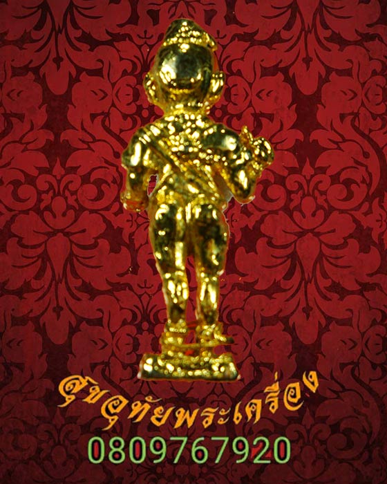 [ รายละเอียด ] กุมารทอง พิธีมหาพุทธาภิเษก วัดฤาษีนุตจรัสวงษาราม จ.สระบุรี จัดสร้างโดย ท่านพระครูจรัส อธิปุญโญ วัดฤาษีนุวัดฤษีนุตจรัสวงค์ษารามราวปี2515-2520 เป็นกุมารทองยุคต้นของท่าน องค์นี้พิมพ์ใหญ่ สูงประมาณ 2 นิ้วคาถาบูชากุมารทองให้ว่า นะโม 3 จบ กุมระจุติ กาโลโหติ สัพพะโว ขอจงมาบังเกิดเป็นกุมารทอง จิเจรุนิ จิตตัง เจตะสิกัง โลนัง นะมิตตัง กุมาระวา อาคัณฉายะ อาคัณฉาหิ นะมะพะทะ สุนะโมโซ จากนั้นก็ขอในสิ่งที่ปรารถนา เรื่องการถวยของบูชาท่านว่าไม่ต้องก็ใด้แต่จะถวายเป็นนำ้แดงก็ใด้ครับ กุมารทองของท่านเด่นเรื่องโชคลาภ ทำมาค้าขาย น่าบูชาครับ