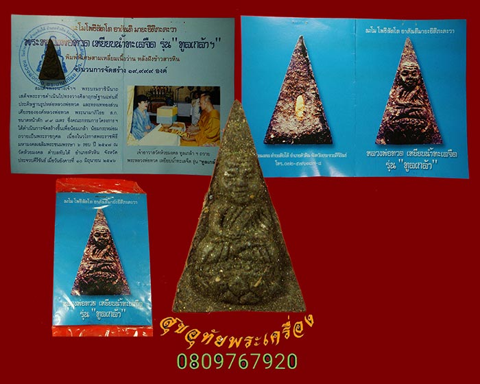 111.หลวงพ่อทวด วัดห้วยมงคล รุ่นทูลเกล้า พิมพ์สามเหลี่ยมหลังข้าวสารหิน ปี46 ซองเดิมใบแนบเดิมครับ***3