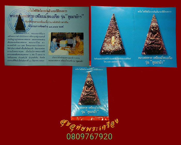 [ ชื่อพระ ] 112.หลวงพ่อทวด วัดห้วยมงคล รุ่นทูลเกล้า พิมพ์สามเหลี่ยมหลังข้าวสารหิน ปี46 ซองเดิมใบแนบเดิมครับ***4