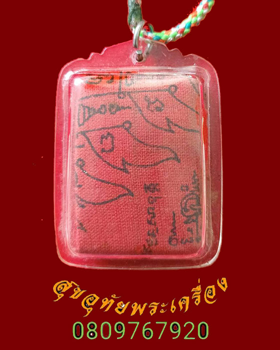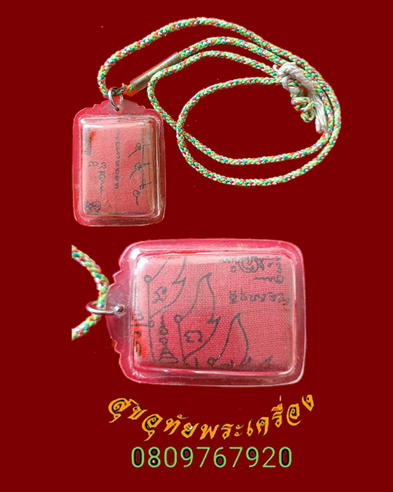 [ ชื่อพระ ] 16.ผ้ายันต์แดง เลี่ยมเก่า พร้อมสร้อยเชือกเดิมๆคลาสสิกครับ