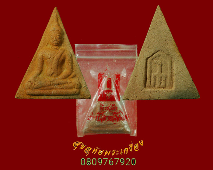 954.พระผงพระแก้ว พิมพ์สามเหลี่ยม หลังยันต์ เนื้อจัดเก่า เข้มขลังน่าบูชาครับ