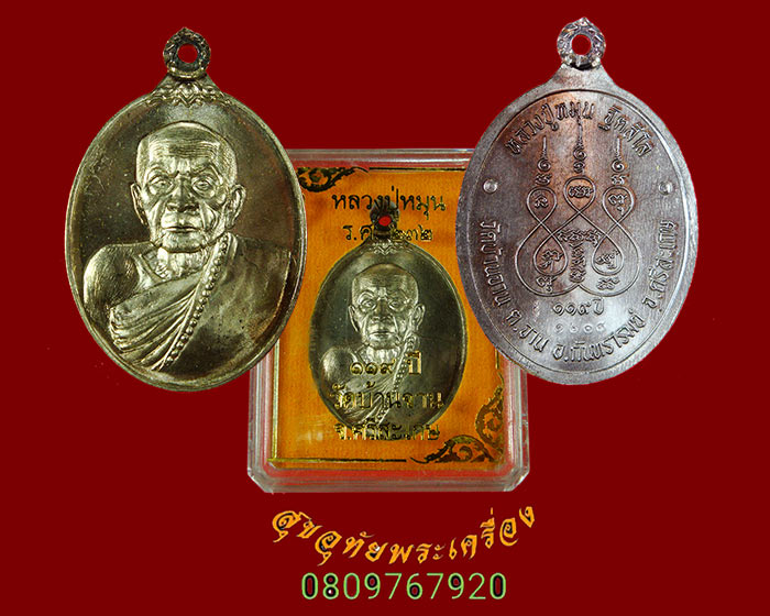[ รายละเอียด ] .เหรียญห่วงเชื่อม เนื้อขัดซาติน หลวงปู่หมุน วัดบ้านจาน รุ่น 119 ปี (ร.ศ.232)สวยกริ๊บ จำนวนการจัดสร้าง 1999 เหรียญ องค์นี้หมายเลข 1208 สร้างน้อยน่าบูชาครับ