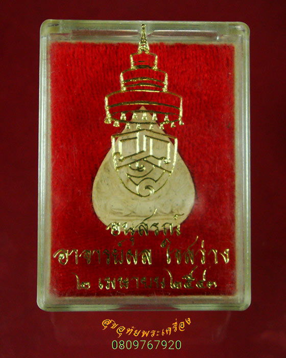 63.พระสมเด็จผงทองพิเศษ พิมพ์เล็ก หลวงพ่อวัดไร่ขิง รุ่นบูรณะศาลาการเปรียญ หลังแผ่นรักทอง  กล่องเดิม*1