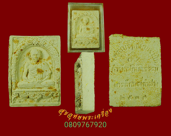 [ ชื่อพระ ] 303.พระผงสี่เหลี่ยม หลวงพ่อเกษม เขมโก สำนักสุสานไตรลักษณ์ จ.ลำปาง ปี2537 พร้อมกล่องเดิมครับ***1