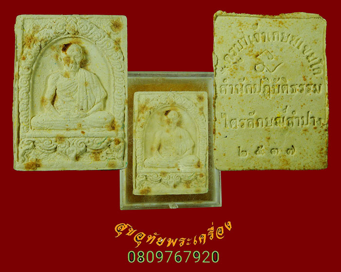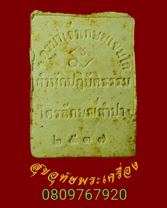 [ ชื่อพระ ] 304.พระผงสี่เหลี่ยม หลวงพ่อเกษม เขมโก สำนักสุสานไตรลักษณ์ จ.ลำปาง ปี2537 พร้อมกล่องเดิมครับ***2