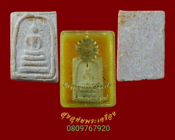 63.พระสมเด็จผงทองพิเศษ พิมพ์เล็ก หลวงพ่อวัดไร่ขิง รุ่นบูรณะศาลาการเปรียญ หลังแผ่นรักทอง  กล่องเดิม*1
