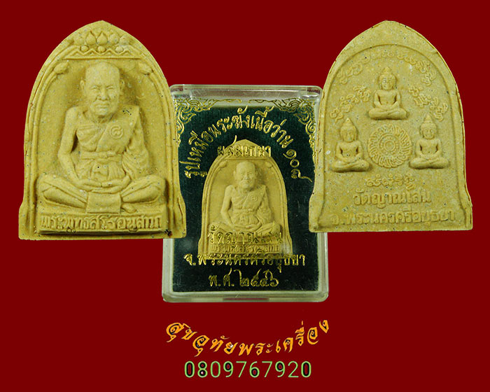 63.พระสมเด็จผงทองพิเศษ พิมพ์เล็ก หลวงพ่อวัดไร่ขิง รุ่นบูรณะศาลาการเปรียญ หลังแผ่นรักทอง  กล่องเดิม*1