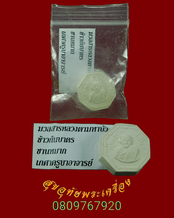 [ รายละเอียด ] พระผงแปดเหลี่ยม หลวงปู่มั่น จัดสร้างด้วยมวลสารมงคลตามใบแนบครับ องค์นี้ซองเดิมใบแนบเดิมครับ