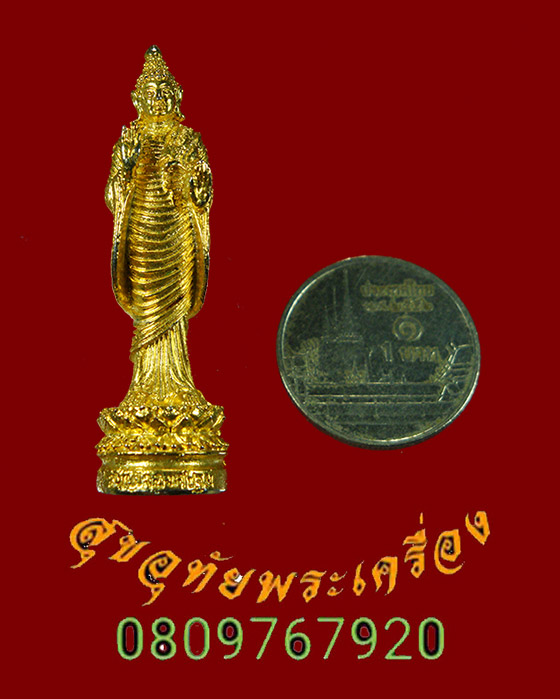[ ชื่อพระ ] 390.รูปหล่อสมเด็จองค์ปฐม พิมพ์ยืนประทานพร เนื้อโลหะกะใหล่ทอง เข้มขลังครับ