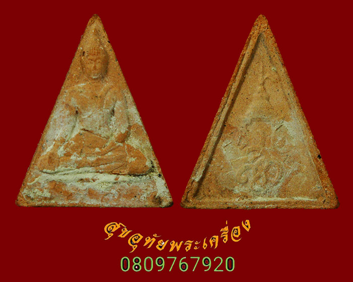 954.พระผงพระแก้ว พิมพ์สามเหลี่ยม หลังยันต์ เนื้อจัดเก่า เข้มขลังน่าบูชาครับ