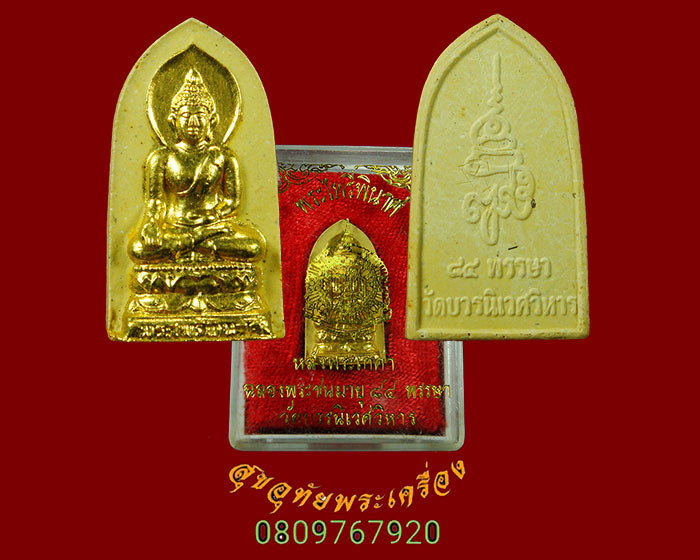 63.พระสมเด็จผงทองพิเศษ พิมพ์เล็ก หลวงพ่อวัดไร่ขิง รุ่นบูรณะศาลาการเปรียญ หลังแผ่นรักทอง  กล่องเดิม*1