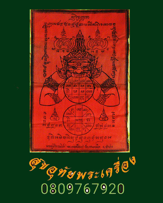 [ ชื่อพระ ] 710.ผ้ายันต์ราหู หลวงพ่อศรีอ่อง วัดบรรพตสถิตย์ ลำปาง สมบูรณ์เดิมๆครับ