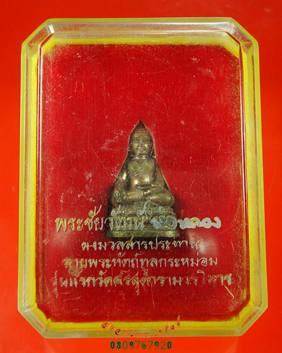 63.พระสมเด็จผงทองพิเศษ พิมพ์เล็ก หลวงพ่อวัดไร่ขิง รุ่นบูรณะศาลาการเปรียญ หลังแผ่นรักทอง  กล่องเดิม*1