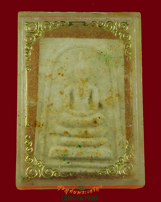 63.พระสมเด็จผงทองพิเศษ พิมพ์เล็ก หลวงพ่อวัดไร่ขิง รุ่นบูรณะศาลาการเปรียญ หลังแผ่นรักทอง  กล่องเดิม*1
