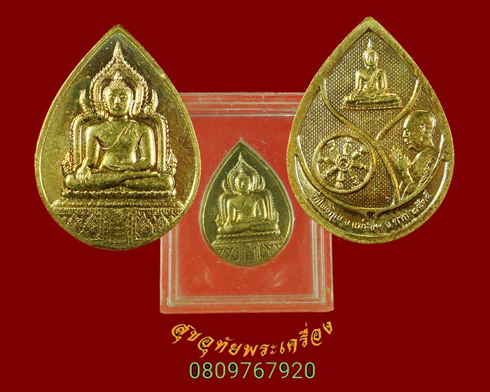63.พระสมเด็จผงทองพิเศษ พิมพ์เล็ก หลวงพ่อวัดไร่ขิง รุ่นบูรณะศาลาการเปรียญ หลังแผ่นรักทอง  กล่องเดิม*1