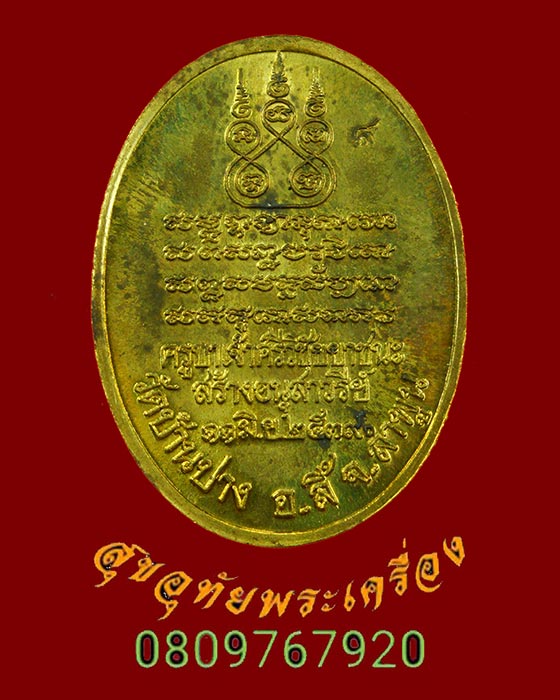 [ ชื่อพระ ] 966.เหรียญครูบาศรีวิชัย วัดบ้านปาง ปี2539 เนื้อทองฝาบาตร มีโค๊ต กล่องเดิมครับ