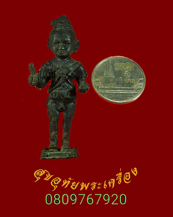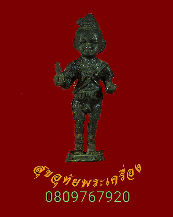[ รายละเอียด ] กุมารทอง พิธีมหาพุทธาภิเษก วัดฤาษีนุตจรัสวงษาราม จ.สระบุรี จัดสร้างโดย ท่านพระครูจรัส อธิปุญโญ วัดฤาษีนุวัดฤษีนุตจรัสวงค์ษารามราวปี2515-2520 เป็นกุมารทองยุคต้นของท่าน องค์นี้พิมพ์ใหญ่ สูงประมาณ 2 นิ้วคาถาบูชากุมารทองให้ว่า นะโม 3 จบ กุมระจุติ กาโลโหติ สัพพะโว ขอจงมาบังเกิดเป็นกุมารทอง จิเจรุนิ จิตตัง เจตะสิกัง โลนัง นะมิตตัง กุมาระวา อาคัณฉายะ อาคัณฉาหิ นะมะพะทะ สุนะโมโซ จากนั้นก็ขอในสิ่งที่ปรารถนา เรื่องการถวยของบูชาท่านว่าไม่ต้องก็ใด้แต่จะถวายเป็นนำ้แดงก็ใด้ครับ กุมารทองของท่านเด่นเรื่องโชคลาภ ทำมาค้าขาย น่าบูชาครับ
