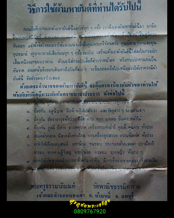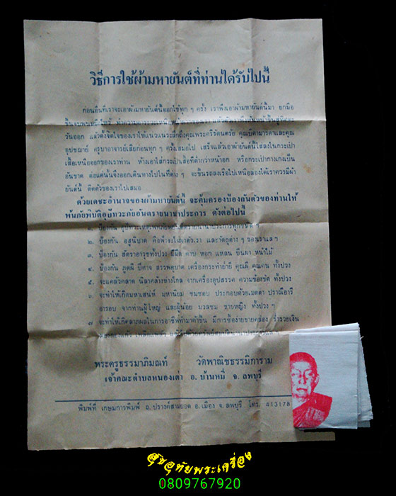 [ ชื่อพระ ] 170.ผ้ายันต์ พระครูธรรมาภิมณฑ์ (หลวงปู่บุญเลี้ยง สุชาโต) วัดหนองเต่า ลพบุรี 13 สมบูรณ์ใบแนบเดิมๆครับ