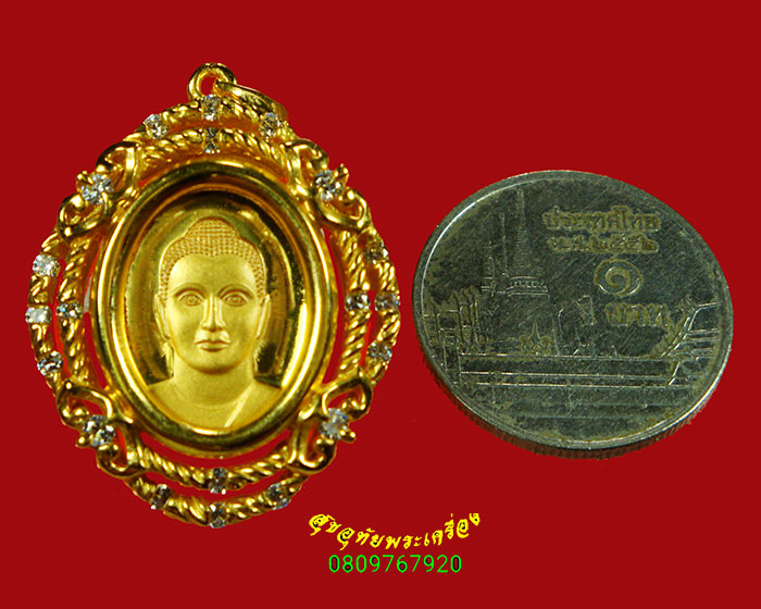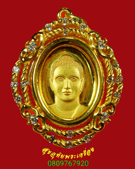 [ ชื่อพระ ] 276.จี้พระของขวัญ วัดพระธรรมกาย เนื้อโลหะชุบทองฝังเพชร ปี2546 สวยกริ๊บครับ