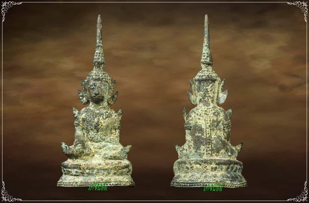 [ รายละเอียด ] พระพุทธรูปสมัยรัตนโกสินทร์ นั่งทรงเครื่องพิมพ์มารวิชัย หน้าตัก ๑ นิ้ว สูง ๓ นิ้ว เนื้อโลหะผสม ลงรักปิดทองร่องชาตเดิมก้นดินไทย อายุ 100 กว่าปี ล่วงมาแล้ว หรือเรียกสั้นๆว่า พระรัตนะ น้นเอง ส่วนองค์นี้สภาพสมบูรณ์ สภาพสุดคลาสสิค อีกละคราฟ *************************************** พระรัตนะเป็นพระที่เริ่มมีการสร้างมาตั้งแต่สมัยต้นยุครัตนโกสินทร์ (ประมาณราชกาลที ๑ เป็นต้นมา) โดยได้รับอิธิพลงานช่างศิลป์มาจากศิลปะอยุธยาตอนปลายในสกุลช่างบ้านพลูหลวง พุทธลักษณ์มีทั้งแบบห่มคลุมจีวรเรียบและจีวรดอกสวมเครื่องทรงแบบกษัตริย์มีสร้อยสังวาลทรงชฐาแบบเทวดาศิลปะงดงามอลังการแสดงให้เห็นถึงความเจริญรุ่งเรืองทางพระพุทธศาสนาและบ้านเมืองในยุคนั้นโดยมากจะพบตามวัดเก่าที่มีอายุตั้งแต่ ๑๐๐ ปีขึ้นไป ทั้งสิ้น ทั้งในเขตกรุงเทพมหานครและปริมณฑล เหมาะสำหรับไว้ศึกษาอายุโลหะโบราณและรักทองเก่า และยังเป็นพระที่น่าบูชาหรือสะสมเป็นอย่างยิ่งเนื่องจากเป็นพระที่สร้างขึ้นและเก็บตั้งบูชาในเขตพุทธสถานที่มีพระสังฆ์เจริญพุทธมนต์ทำวัตรเช้า-เย็นมาเป็นร้อยปีซึ่งเป็นการพุทธาภิเสก(ปลุกเสก)ไปในตัวอีกด้วย ขนาดก็เก่าเล็ก กระทัดรัด สำหรับสไตร์พระบูชาเอาไว้บนหิ้งก็ได้ เอาติดหน้ารถก็ดี เนื่องจากขนาดไม่ใหญ่มาก อีกหนึ่งของดี ที่ สนน ราคายังเบาๆ น่าเก็บ น่าใช้อีกละคราฟ