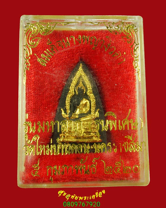[ ชื่อพระ ] 735.พระผงไม้งิ้วดำปิดทอง พิมพ์พระพุทธชินราช วัดใหม่บ้านดอน โคราช สวยกริ๊บ เข้มขลังน่าบูชาครับ