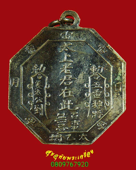 [ ชื่อพระ ] 763.เหรียญยันต์โป๊ยก่วยแปดทิศ หลังฮู้ศาลไท้เสียงเล่ากุงเนื้อ กะไหล่เงิน น่าบูชาครับ