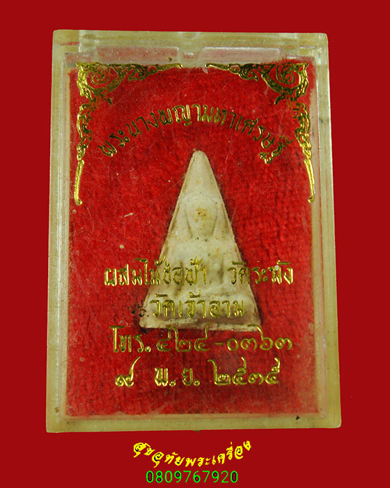 [ ชื่อพระ ] 880.นางพญามหาเศรษฐี วัดเจ้าอาม เนื้อผงผสมไม้ช่อฟ้าวัดระฆัง ปี35 กล่องเดิมครับ