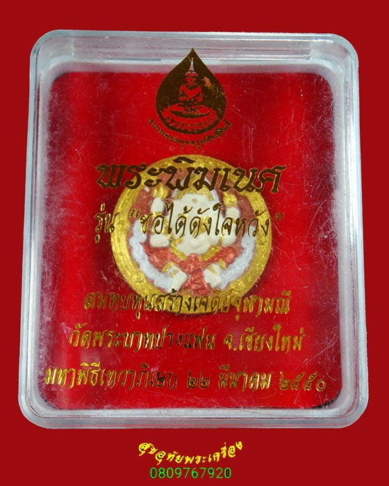 [ ชื่อพระ ] 953.พระพิฆเนศ วัดพระบาทปางแฟน จ.เชียงใหม่ ปี 2550 รุ่นขอได้ดั่งใจหวัง เนื้อผงลงสีปิดทอง กล่องเดิม**4