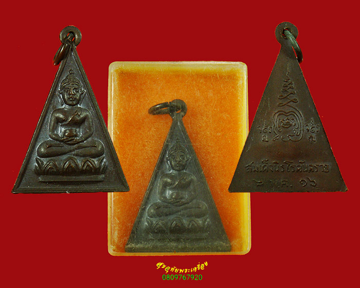 975.เหรียญสมเด็จนิรโรคันตราย จ.พัทลุง เนื้อทองแดงรมดำ ปี 2516  มีกล่องเก่า พิธีใหญ่น่าบูชามากครับ