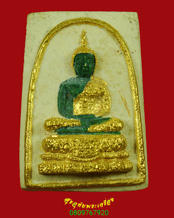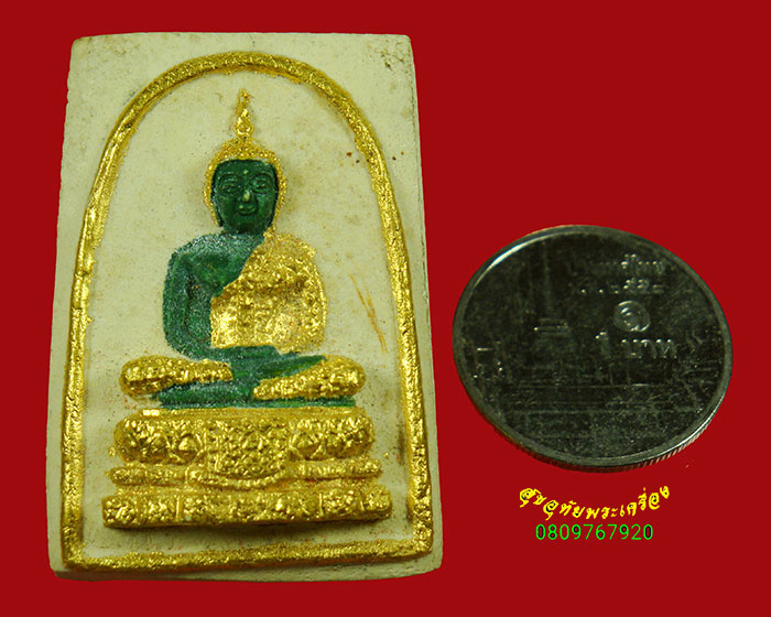 [ ชื่อพระ ] 978.พระแก้วมรกต หลังปั๊มหมึก เนื้อผงลงสีปิดทอง เนื้อจัดแห้งยุคเก่า เข้มขลังน่าบูชาครับ