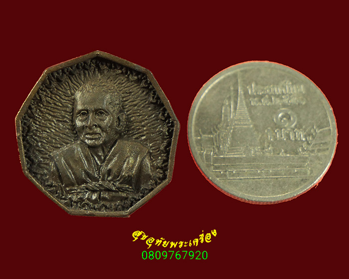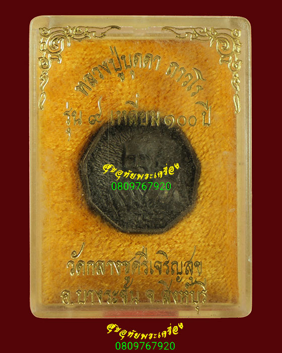 74.เหรียญหล่อ 9 เหลี่ยม 100ปี หลวงปู่บุดดา วัดกลางชูศรี ปี2536 เนื้อนวะ กล่องเดิมน่าบูชาครับ