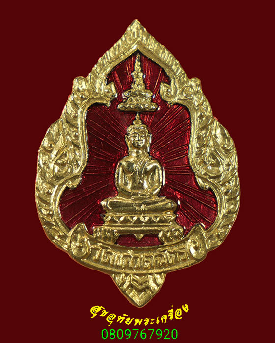 [ ชื่อพระ ] 119.เข็มกลัดพระประธาน วัดเศวตฉัตร กรุงเทพฯ กะไหล่ทองลงยาแดง น่าบูชาครับ