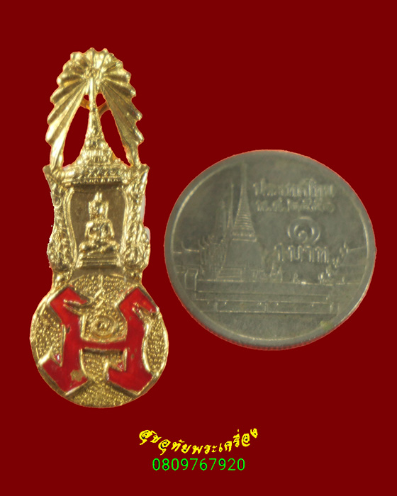 [ ชื่อพระ ] 438.เข็มกลัดกะไหล่ทองลงยาแดง หลวงพ่อโสธร ปี2519 สวยกร๊บเข้มขลังน่าบูชาครับ